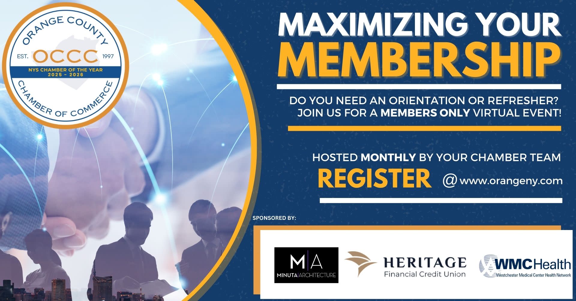 Join us for Maximizing Your Membership, our virtual orientation and refresher session hosted monthly! Learn how to get the most value from your chamber membership, including available benefits, resources, and opportunities designed to help you succeed. We recommend attending this refresher at least once a year, as we are constantly adding new member benefits and additional resources to support your growth and success.